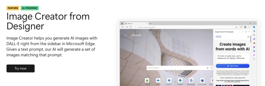Microsoft Edge Image Creator is different from other tools in that it isn’t a standalone AI model at all – it’s essentially a built-in DALL-E tool accessible via the Edge browser. In other words, Edge’s sidebar integrates OpenAI’s image generator, so you can create DALL-E powered visuals without visiting a separate site. (You’ll need a Microsoft account and Edge browser to use it.)