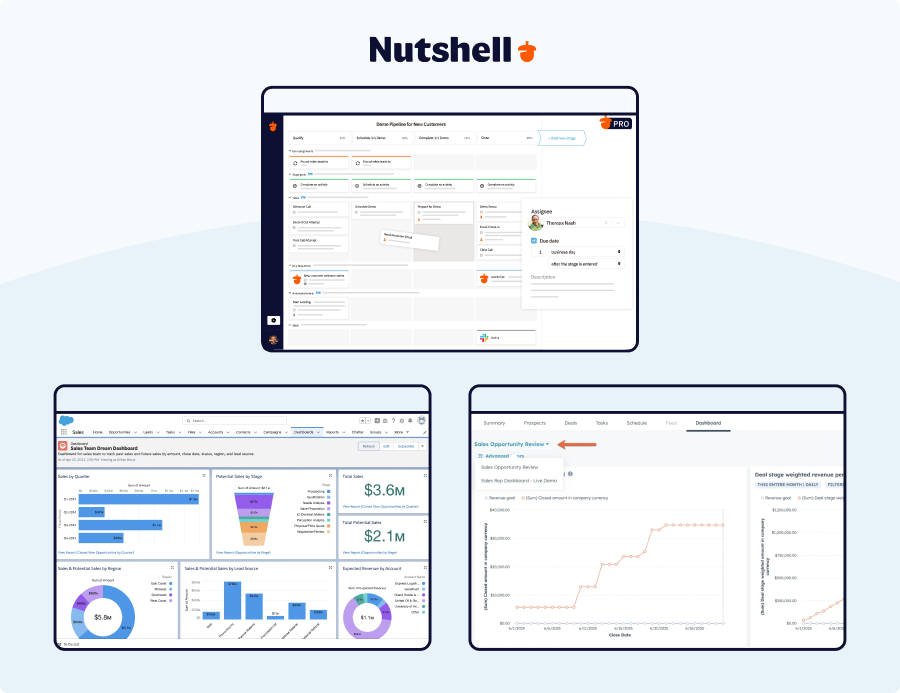 Nutshell stands out for SMBs ready to scale because it delivers the perfect balance of power and usability. Unlike enterprise options that take months to implement, Nutshell gets teams productive in days. The all-in-one approach, including built-in email marketing, eliminates the need for multiple tools while keeping costs predictable.