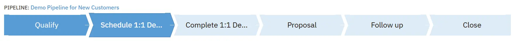 Perhaps you’re wondering what a sales pipeline looks like. A sales pipeline is typically depicted as a horizontal bar broken up into the different sales process stages. For example, the sales pipeline pictured above shows a horizontal series of pipeline stages from Qualify to Close.