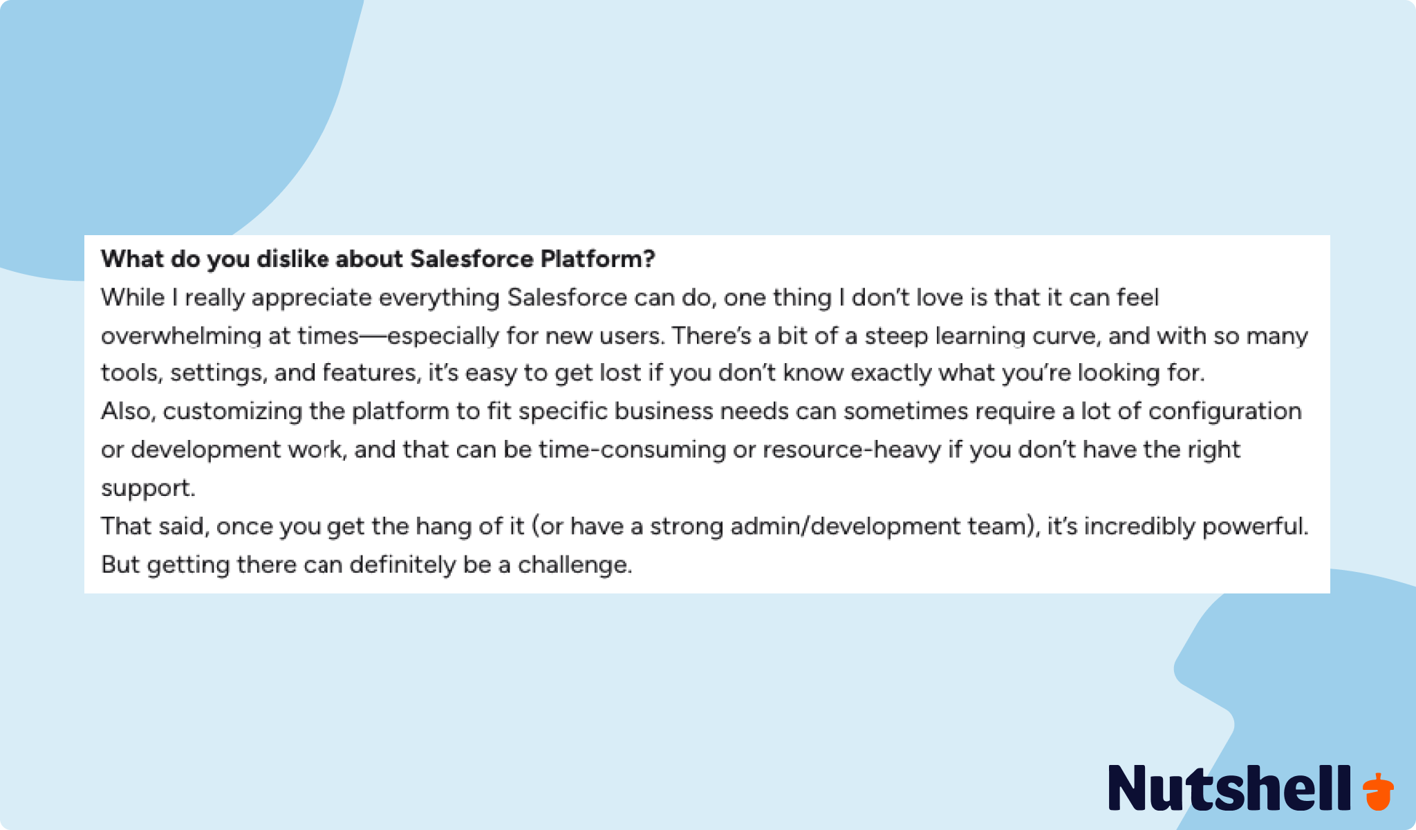 Of course, it’s worth pointing out that both Salesforce and Pipedrive share some of the same weaknesses. Pipedrive might be easier to use, but it still has a difficult learning curve. And neither tool is known for its customer service.
