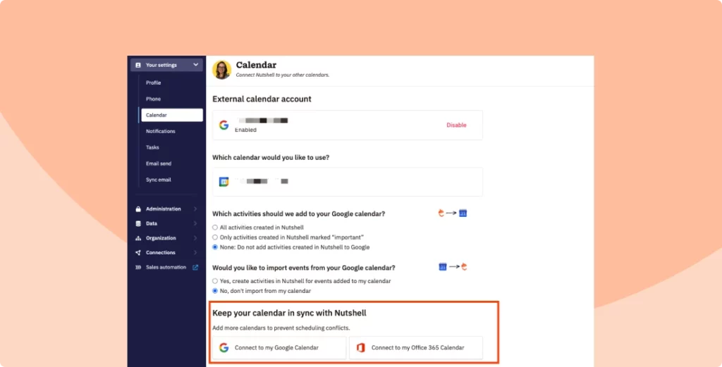Customize each meeting in your online calendar, whether it’s a client one-on-one or team huddle, with all the information you need right from your CRM using Nutshell’s online meeting scheduler.Â