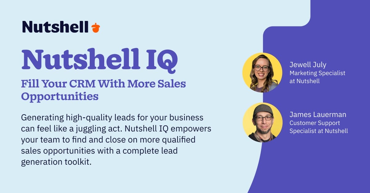 Nutshell IQ is your complete lead generation toolkit built inside your CRM, so you can discover and connect with more prospects faster.
