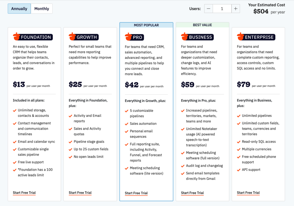 All Nutshell Sales plans can be purchased month-to-month or on an annual contract with a built-in discount.